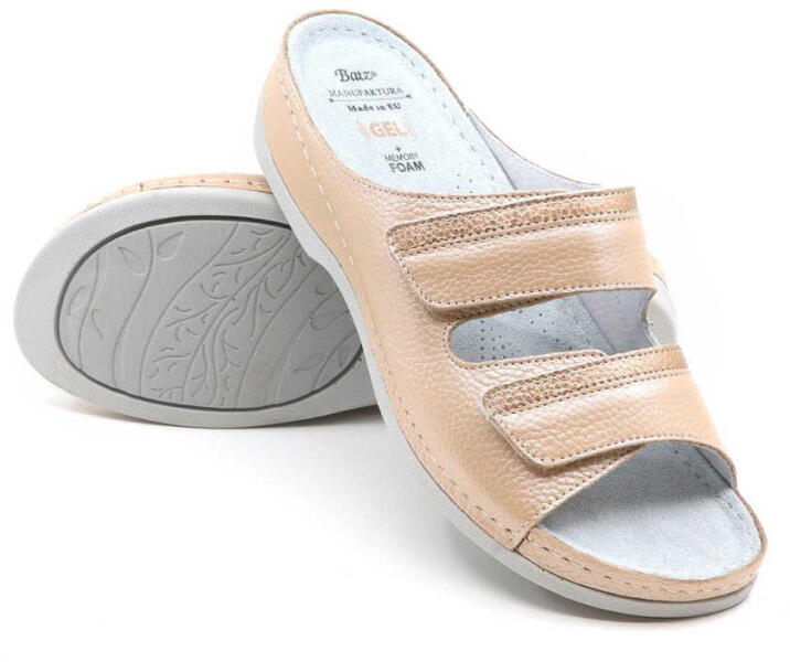 Batz női Rea egészségügyi papucs - A Rea bőr egészségügyi papucs zselés, szuper puha és anatómiailag formázott talppal és csúszásmentes talppal rendelkezik. A tépőzárnak köszönhetően a méret a lábfejnél állítható. - 100% valódi, válogatott minőségű bőr