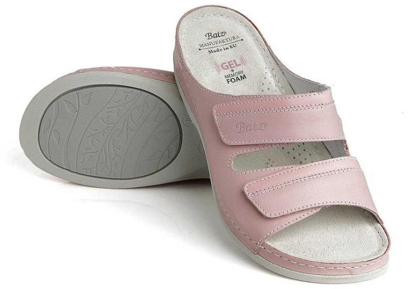 Batz női egészségügyi papucs Rea Pink - A Rea bőr egészségügyi papucs gél, szuper puha és anatómiailag formázott talppal és csúszásmentes talppal rendelkezik. A tépőzárnak köszönhetően a méret a lábfejnél állítható. Anyagok: