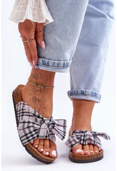 Butosklep Mintás, női papucs - masnival (SAR-27 GREY__26237)