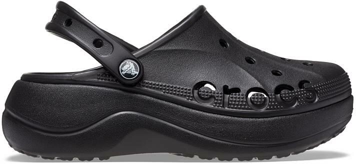 Crocs Baya Platform Clog női papucs A közkedvelt Baya immáron platformos női papucs változatban is elérhető. A 4 centi magas talpakon túl azonban nem változtat az alaptulajdonságain, így a Crocs felirat formájú szellőzőnyílásait is megőrizte.  Tartós és rugalmas Croslite anyagból készült, melynek szellőzőnyílásai hűsítik a lábadat és megkönnyítik a tisztítást: víz és fertőtlenítő keverékével könnyedén tisztítható.  Forgó sarokpántjai stabilitást adnak a lábnak, míg a kis szellőzőlyukak Jibbitz kiegészítőkkel díszíthetők.  A belsőtalp masszírozó bütykei javítják a talp vérkeringését és csökkentik az izomfáradságot, míg az ergonómikus talpágy és saroktámasz elnyeli a lépés során kialakult energiákat.   Croslite alapanyag tulajdonságai: szabadalmaztatott technológia pehelykönnyű felveszi a láb alakját ellenáll a kellemetlen szagoknak, könnyen fertőtleníthető nem hagy anyagnyomot a padlón