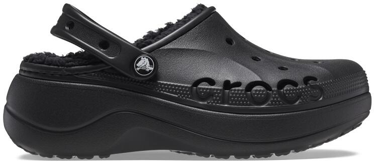 Crocs Baya Platform Lined Clog női papucs A magasított talpú, platformos Baya női papucs téliesített, bundás változata 4 centis talpakkal és puha, meleg béléssel rendelkezik, s a Crocs felirat formájú szellőzőnyílásait is megőrizte.  Tartós és rugalmas Croslite anyagból készült, melynek szellőzőnyílásai hűsítik a lábadat és megkönnyítik a tisztítást: víz és fertőtlenítő keverékével könnyedén tisztítható.  A belsőtalp masszírozó bütykei javítják a talp vérkeringését és csökkentik az izomfáradságot, míg az ergonómikus talpágy és saroktámasz elnyeli a lépés során kialakult energiákat.  Forgó sarokpántjai stabilitást adnak a lábnak, míg a kis szellőzőlyukak Jibbitz kiegészítőkkel díszíthető.   Croslite alapanyag tulajdonságai: szabadalmaztatott technológia pehelykönnyű felveszi a láb alakját ellenáll a kellemetlen szagoknak, könnyen fertőtleníthető nem hagy anyagnyomot a padlón