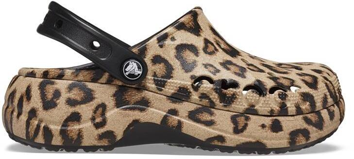Crocs Baya Platform Printed Clog női papucs A közkedvelt Baya immáron platformos női papucs változatban és ilyen csodás, párducmintás kivitelben is elérhető. A 4 centi magas talpakon túl azonban nem változtat az alaptulajdonságai, így a Crocs felirat formájú szellőzőnyílásait is megőrizte.  Tartós és rugalmas Croslite anyagból készült, melynek szellőzőnyílásai hűsítik a lábadat és megkönnyítik a tisztítást: víz és fertőtlenítő keverékével könnyedén tisztítható.  Forgó sarokpántjai stabilitást adnak a lábnak, míg a kis szellőzőlyukak Jibbitz kiegészítőkkel díszíthető.  A belsőtalp masszírozó bütykei javítják a talp vérkeringését és csökkentik az izomfáradságot, míg az ergonómikus talpágy és saroktámasz elnyeli a lépés során kialakult energiákat.   Croslite alapanyag tulajdonságai: szabadalmaztatott technológia pehelykönnyű felveszi a láb alakját ellenáll a kellemetlen szagoknak, könnyen fertőtleníthető nem hagy anyagnyomot a padlón