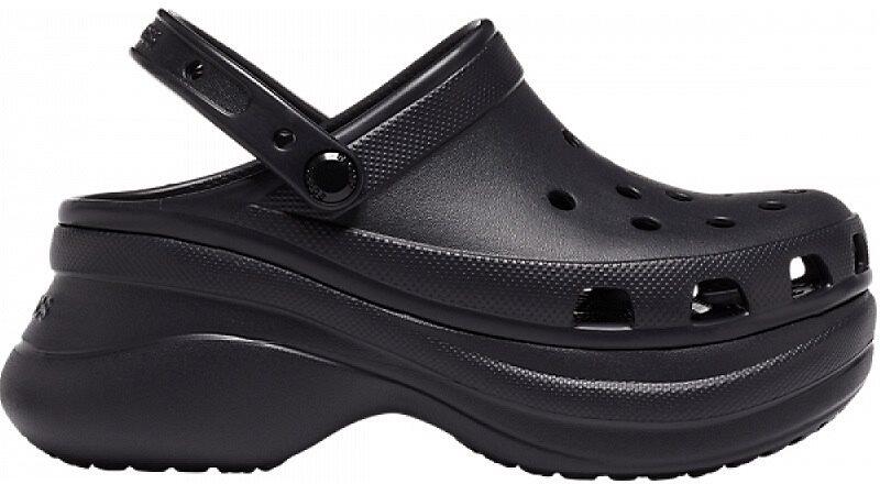 Crocs Classic Bae Clog női platform papucs Ez a platformos papucs a maga 60 mm-es talpvastagságáva egy igen merész és úttörő modell a Crocstól. A Classic papucson alapszik, így megtartották annak jellegzetes, Jibibtzekkel kiegészíthető szellőzőnyílásait is. Puha és rugalmas CrosLite alapanyaga kis súlyt, az Iconic Crocs Comfort fejlesztés hagyományos Crocs kényelmet nyújt, a felhajtható sarokpántja pedig magabiztos járást tesz lehetővé.  Belső talpán körkörös irányban végigfutó masszírozó bütykök fokozzák a vérkeringést, harántemelő boltíve pedig egész napos kényelmet biztosít.  Az ergonomikus talpágy és saroktámasz elvezeti a lépés során kialakult energiákat, csökkenti az ízületek terhelését. Croslite alapanyag tulajdonságai: szabadalmaztatott technológia pehelykönnyű felveszi a láb alakját ellenáll a kellemetlen szagoknak, könnyen fertőtleníthető nem hagy anyagnyomot a padlón