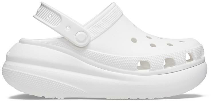 Crocs Classic Crush Clog platformos női papucs Friss megjelenést kölcsönöz ez a női platformos papucs egyszínűségével és az 5 centiméteres plusz talpmagasságával.  A rugalmas és tartós CrosLite alapanyag hagyományos Crocs kényelmet biztosít, felhajtható sarokpántja pedig biztosan tartja a lábakat.  Az ergonomikus talpágy és saroktámasz elvezeti a lépés során kialakult energiákat, csökkenti az ízületek terhelését.  Belső talpán körkörösen elhelyezkedő masszírozó bütykök fokozzák a vérkeringést, harántemelő boltíve pedig egész napos kényelmet biztosít.   Croslite alapanyag tulajdonságai: szabadalmaztatott technológia pehelykönnyű felveszi a láb alakját ellenáll a kellemetlen szagoknak, könnyen fertőtleníthető nem hagy anyagnyomot a padlón