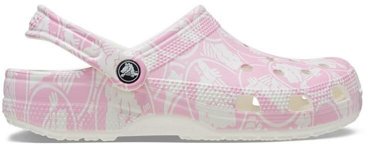 Crocs Classic Duke Print Clog női papucsA Crocs régi, krokodilos logója adja a mintáját, ennek a retro hatású és színvilágú Classic női papucsnak. A rugalmas és tartós CrosLite alapanyaga kis súlyt és hagyományos Crocs kényelmet biztosít, felhajtható sarokpántja pedig biztosan tartja a lábakat.  Az ergonomikus talpágy és saroktámasz elvezeti a lépés során kialakult energiákat, csökkenti az ízületek terhelését.  Belső talpán körkörösen elhelyezkedő masszírozó bütykök fokozzák a vérkeringést, harántemelő boltíve pedig egész napos kényelmet biztosít.  A megszokott, Jibbitzekkel díszíthető szellőzőnyilások itt is megtalálhatóak a papucs felső részén. Croslite alapanyag tulajdonságai: szabadalmaztatott technológia pehelykönnyű felveszi a láb alakját ellenáll a kellemetlen szagoknak, könnyen fertőtleníthető nem hagy anyagnyomot a padlón
