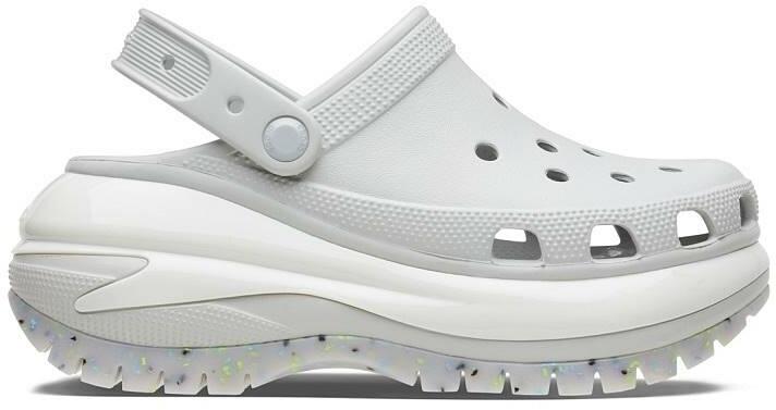 Crocs Classic Mega Crush Clog női platformos papucs Bemutatjuk a Classic Mega Crush Clogot, a stílus és a kényelem tökéletes fúzióját! A klasszikus clog sziluettel tervezett és innovatív funkciókkal teli lábbeli remekmű tökéletes választás azok számára, akik mindkét világból a legjobbat igénylik. A prémium minőségű anyagokból készült Classic Mega Crush Clog egyszerre tartós és stílusos. A felsőrész kiváló minőségű anyagból készült, amely egyszerre puha és rugalmas, és érintésre luxus érzetet nyújt. A klumpának elegáns kialakítása is van, csúszós stílusú, amely lehetővé teszi a könnyű fel- és levételt. Az igazi varázslat azonban a klumpli belsejében rejlik. A talpbetétet puha és támogató habszivaccsal bélelték ki, amely minden lépésnél bölcsőbe helyezi a lábat, kivételes párnázottságot és alátámasztást biztosítva. Ezenkívül a klumpában egyedülálló, tömörítéssel formázott EVA középtalp található, amelyet úgy terveztek, hogy elnyelje a lökéseket és egész napos kényelmet biztosítson. A Classic Mega Crush Clog külső talpa is figyelemre méltó. Tartós gumiból készült, amely kiváló tapadást biztosít a legkülönbözőbb felületeken, így biztosítva, hogy ezeket a klumpákat magabiztosan viselhesse, bárhová is vigye a napja. Platformos, magasított talpa 6 cm magas Összességében a Classic Mega Crush Clog a divat és a funkció tökéletes keveréke. Stílusos kialakításával, prémium minőségű anyagaival és kivételes kényelmével ideális választás mindazok számára, akik sokoldalú és megbízható klumpát keresnek, amit Jibbitz papucsdíszekkel még egyedibbé tehető. Croslite alapanyag tulajdonságai: szabadalmaztatott technológia pehelykönnyű felveszi a láb alakját ellenáll a kellemetlen szagoknak, könnyen fertőtleníthető nem hagy anyagnyomot a padlón