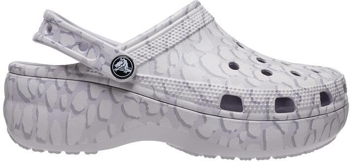 Crocs Classic Platform 4 Her Clog W női papucs Ezúttal egy igazán szolíd mintázatú és szinezetű külső kapott a Crocs Classic modellen alapuló platformos női papucs a megemelt, 41 mm magas talpakkal. Megőrizte a jellegzetes szellőző nyílásokat, ami szinte kiált a Jibbitz díszek után. A puha és rugalmas CrosLite alapanyag kis súlyt és hagyományos Crocs kényelmet biztosít otthon, a szabadban vagy akár a strandon.  Felhajtható sarokpántja biztosan tartja a lábakat, így a szabadban is magabiztos járást tesz lehetővé.  Az ergonomikus talpágy és saroktámasz elvezeti a lépés során kialakult energiákat, csökkenti az ízületek terhelését.  Belső talpán körkörös irányban végigfutó masszírozó bütykök fokozzák a vérkeringést, harántemelő boltíve pedig elősegíti a helyes lábtartást. Croslite alapanyag tulajdonságai: szabadalmaztatott technológia pehelykönnyű felveszi a láb alakját ellenáll a kellemetlen szagoknak, könnyen tisztítható