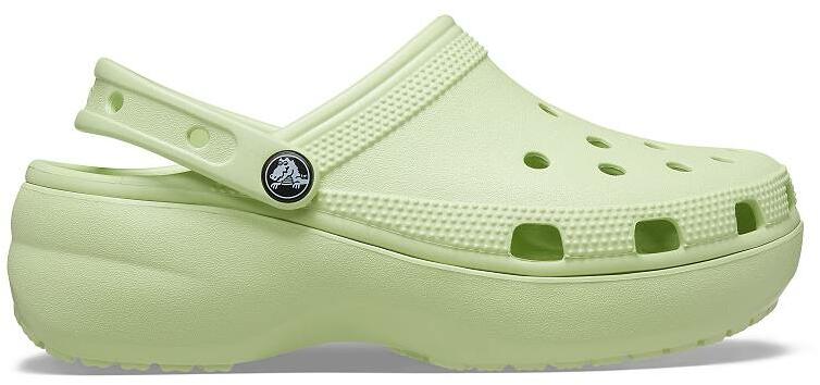 Crocs Classic Platform Clog W női papucs Ez a platformos női papucs a gyártó alapmodelljére, a Classicra épült, megemelt, 41 mm magas talpakkal. Ezzel együtt megőrizte a jellegzetes szellőző nyílásokat, ami szinte kiált a Jibbitz díszek után. A puha és rugalmas CrosLite alapanyag kis súlyt és hagyományos Crocs kényelmet biztosít otthon, a szabadban vagy akár a strandon.  Felhajtható sarokpántja biztosan tartja a lábakat, így a szabadban is magabiztos járást tesz lehetővé.  Az ergonomikus talpágy és saroktámasz elvezeti a lépés során kialakult energiákat, csökkenti az ízületek terhelését.  Belső talpán körkörös irányban végigfutó masszírozó bütykök fokozzák a vérkeringést, harántemelő boltíve pedig elősegíti a helyes lábtartást. Croslite alapanyag tulajdonságai: szabadalmaztatott technológia pehelykönnyű felveszi a láb alakját ellenáll a kellemetlen szagoknak, könnyen tisztítható