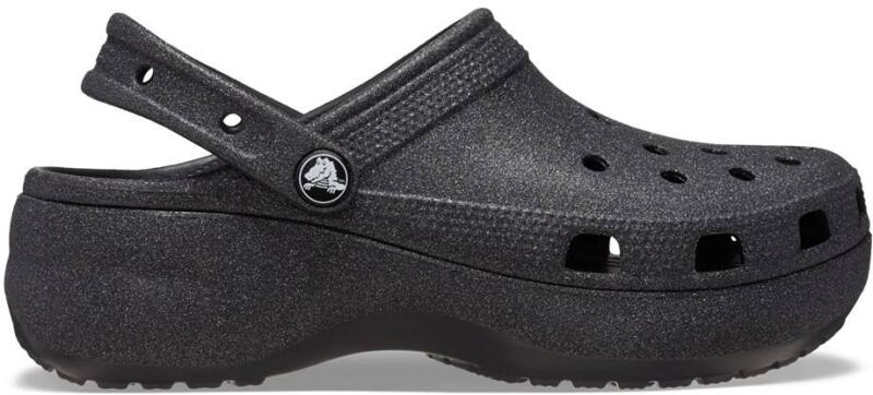Crocs Classic Platform Glitter Clog W női papucs Fejezd ki nőiességedet ezzel a csillogó, egyedi darabbal.  A felhajtható sarokpánt biztosan tartja a lábakat,  4 cm-es platform talpával pedig garantálja a magabiztos lépéseket. Alapanyaga a rugalmas és puha CrosLite, hogy az egész napot 360°-os kényelmben élvezhesse. A belső talpán körkörös irányban végigfutó masszírozó bütykök fokozzák a vérkeringést, az ergonomikus talpágy és saroktámasz pedig elvezeti a lépés során kialakult energiákat, csökkenti az ízületek terhelését.   Croslite alapanyag tulajdonságai: szabadalmaztatott technológia pehelykönnyű felveszi a láb alakját ellenáll a kellemetlen szagoknak, könnyen fertőtleníthető nem hagy anyagnyomot a padlón