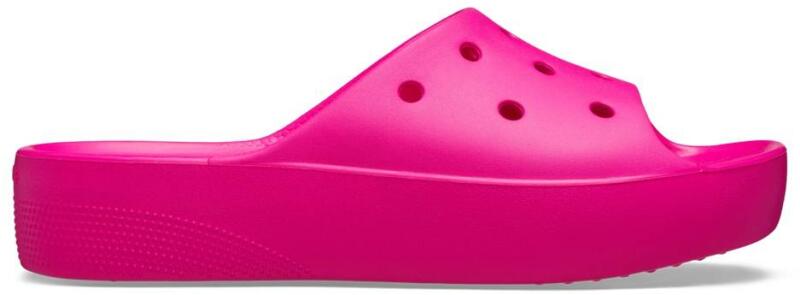 Crocs Classic Paltform Slide női papucs Szolíd, 4 centi magasságú platformos talpakat kapott a Crocs Classic kollekcióhoz tartozó papucs, ami a névadó modellhez képest szolídabb és konzervatívabb vonalvezetésű. A puha és rugalmas Croslite alapanyagának köszönheti tartósságát és kis súlyát. Az Iconic Crocs Comfort technológia hagyományos Crocs kényelmet nyújt otthon, a szabadban vagy a strandon.  Az ergonomikus talpágy és saroktámasz elvezeti a lépés során kialakult energiákat, csökkenti az ízületek terhelését.  Belső talpán körkörös irányban végigfutó masszírozó bütykök fokozzák a vérkeringést, harántemelő boltíve pedig egész napos kényelmet biztosít.   Croslite alapanyag tulajdonságai: szabadalmaztatott technológia pehelykönnyű felveszi a láb alakját ellenáll a kellemetlen szagoknak, könnyen fertőtleníthető nem hagy anyagnyomot a padlón