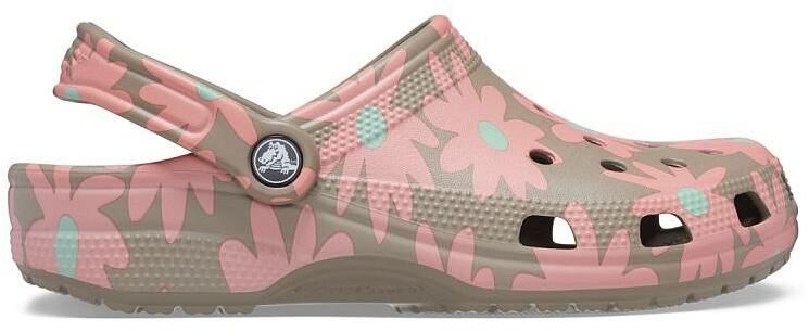 Crocs Classic Retro Resort Clog női papucsIgazi retro hatást keltű mintázatok díszítik a Crocs klasszikus alapmodelljének extravagáns női papucsát a jól megszokott, Jibbitzekkel díszíthető szellőzőlyukakkal. A rugalmas és tartós CrosLite alapanyag kis súlyt és egész napos kényelmet biztosít, felhajtható sarokpántja pedig biztosan tartja a lábakat.  Az ergonomikus talpágy és saroktámasz elvezeti a lépés során kialakult energiákat, csökkenti az ízületek terhelését.  Belső talpán körkörös irányban végigfutó masszírozó bütykök fokozzák a vérkeringést, harántemelő boltíve pedig egész napos kényelmet biztosít.   Croslite alapanyag tulajdonságai: szabadalmaztatott technológia pehelykönnyű felveszi a láb alakját ellenáll a kellemetlen szagoknak, könnyen fertőtleníthető nem hagy anyagnyomot a padlón