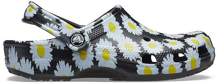 Crocs Classic Vacay Vibes Clog női papucs A vakáció hangulatát megidéző vidám színben és banános mintázattal diszelgő női papucs a gyártó klasszikus alapmodelljére épült, annak jellegzetes, Jibbitzekkel kiegészíthető szellőzőnyílásaival.   Felhajtható sarokpántja biztosan tartja a lábakat, így a szabadban is magabiztos járást tesz lehetővé.  Puha és rugalmas CrosLite alapanyaga kis súlyt és hagyományos Crocs kényelmet biztosít otthon, a szabadban vagy akár a strandon.  Belső talpán körkörös irányban végigfutó masszírozó bütykök fokozzák a vérkeringést, harántemelő boltíve pedig egész napos kényelmet biztosít.  Az ergonomikus talpágy és saroktámasz elvezeti a lépés során kialakult energiákat, csökkenti az ízületek terhelését. Croslite alapanyag tulajdonságai: szabadalmaztatott technológia pehelykönnyű felveszi a láb alakját ellenáll a kellemetlen szagoknak, könnyen fertőtleníthető nem hagy anyagnyomot a padlón