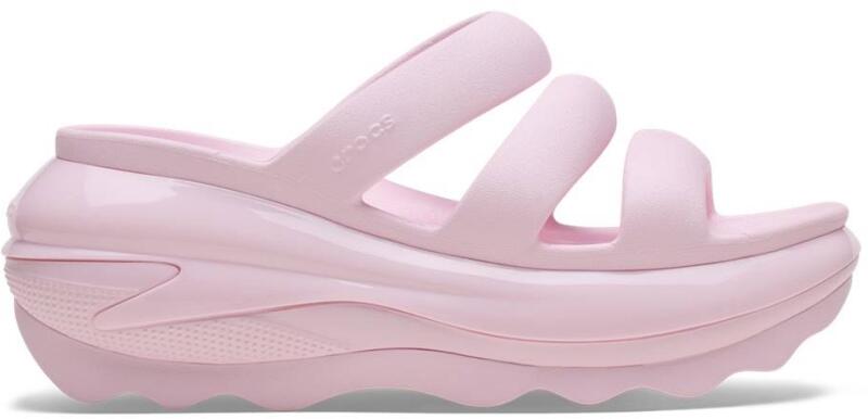 Crocs Mega Crush Triple Strap női platformos papucs Ez a formabontó Crocs női papucs egyedi, hullámosra formázott talpával és szélesre kialakított tripla keresztpántjával a Mega Crush széria egyik legszebb, legmodernebb darabja.  A Croslite anyagokból készült platformos papucs egyszerre tartós és stílusos. A felsőrész kiváló minőségű anyagból készült, amely egyszerre puha és rugalmas, és érintésre luxus érzetet nyújt.   A talpbetétet puha és támogató habszivaccsal bélelték ki, amely minden lépésnél bölcsőbe helyezi a lábat, kivételes párnázottságot és alátámasztást biztosítva. Ezenkívül a papucs belsejében egyedülálló, tömörítéssel formázott EVA középtalp található, amelyet úgy terveztek, hogy egész napos kényelmet biztosítson. A papucs talpa tartós gumiból készült, amely kiváló tapadást biztosít a legkülönbözőbb felületeken, így biztosítva, hogy ezeket a klumpákat magabiztosan viselhesse, bárhová is vigye a napja. Platformos, magasított talpa 6,4 cm sarokmagasságot biztosít. Croslite alapanyag tulajdonságai: szabadalmaztatott technológia pehelykönnyű felveszi a láb alakját ellenáll a kellemetlen szagoknak, könnyen fertőtleníthető nem hagy anyagnyomot a padlón