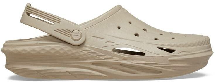 Crocs Off Grid Clog férfi papucs Teljesen új szerű kialakítást kapott ez a férfi papucs, ami olyan, mintha egy Classic clogot összegyútak volna egy Echo papuccsal.  Enyhén laposított, sportos kialakítású papucs, ami trendi talpakat kapott az oldalán nagyobb, új formájú elvezető-nyílásokkal. Rendelkezik az alapmodell minden jó tulajdonságával és a jellegzetes, Jibbitzekkel díszíthető szellőző nyílásaival.  Felhajtható sarokpántja biztosan tartja a lábakat,  így a szabadban is magabiztos járást tesz lehetővé, míg a továbbfejlesztett talp pedig a jobb tapadást biztosít.  Tartós és rugalmas CrosLite alapanyaga kis súlyt, az Iconic Crocs Comfort technológia pedig hagyományos Crocs kényelmet nyújt otthon, a szabadban vagy a strandon.  Belső talpán körkörös irányban végigfutó masszírozó bütykök fokozzák a vérkeringést, harántemelő boltíve pedig egész napos kényelmet biztosít.  Az ergonomikus talpágy és saroktámasz elvezeti a lépés során kialakult energiákat, csökkenti az ízületek terhelését.   Croslite alapanyag tulajdonságai: szabadalmaztatott technológia pehelykönnyű felveszi a láb alakját ellenáll a kellemetlen szagoknak, könnyen fertőtleníthető nem hagy anyagnyomot a padlón