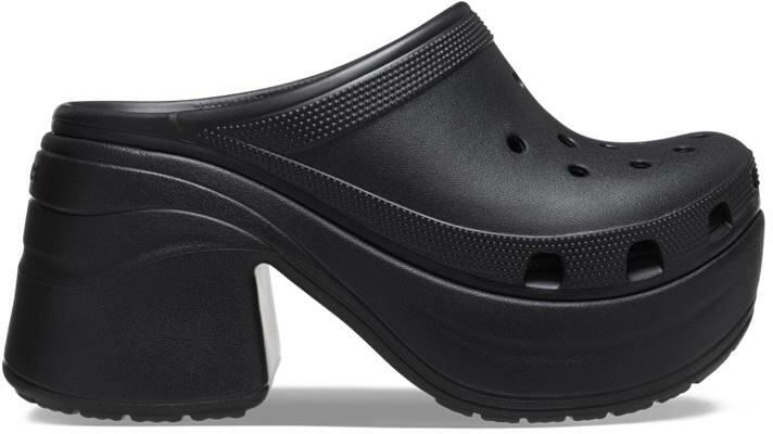 Crocs Siren Clog platformos női papucs Ez az igazán magas sarkú stílus új szintre emelni a Classic Clog nőiességét. A sarkainál 9,2 cm magasságú platformos Crocss női papucs egyszerre kényeztető és csábító, elegáns és vadító, ami nem ismer kompromisszomot.  A Classic modellre épült, így megőrizte a jellegzetes szellőző nyílásokat, amik Jibbitzekkel is díszíthetőek. A puha és rugalmas CrosLite alapanyag kis súlyt és hagyományos Crocs kényelmet biztosít otthon, a szabadban vagy akár a strandon.  Az ergonomikus talpágy és saroktámasz elvezeti a lépés során kialakult energiákat, csökkenti az ízületek terhelését.  Belső talpán körkörös irányban végigfutó masszírozó bütykök fokozzák a vérkeringést, harántemelő boltíve pedig elősefíti a helyes lábtartást. Croslite alapanyag tulajdonságai: szabadalmaztatott technológia pehelykönnyű felveszi a láb alakját ellenáll a kellemetlen szagoknak, könnyen tisztítható
