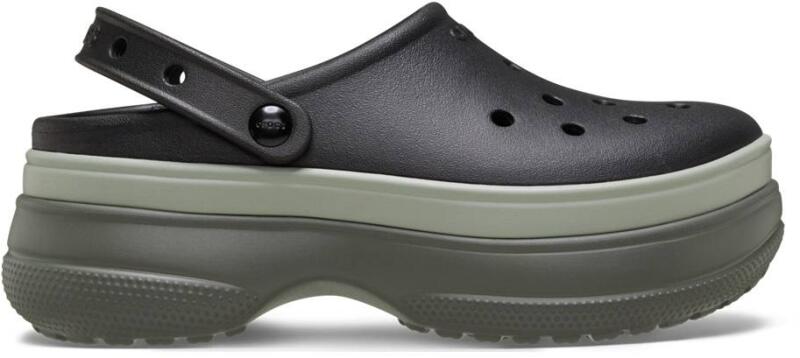 Crocs Stacked Clog női papucs A Stacked Clog a Crocs klasszikus formájának modernebb, emelt talpú változata. Ez a papucs extra magasságot ad anélkül, hogy elveszítené a jól ismert könnyűséget és kényelmet. A több rétegű, lépcsőzetes platform látványos, mégis könnyed megjelenést biztosít, amely feldob minden hétköznapi outfitet. A jól szellőző felsőrész és a Croslite talp kényelmes viseletet garantál. Ez a modell azoknak szól, akik nem csak kényelmes, hanem divatos lábbelit keresnek a mindennapokra.  Az ergonomikus talpágy és saroktámasz elvezeti a lépés során kialakult energiákat, csökkenti az ízületek terhelését. A papucs belső talpán körkörös irányban végigfutó masszírozó bütykök fokozzák a vérkeringést, harántemelő boltíve pedig egész napos kényelmet biztosít. Croslite alapanyag tulajdonságai: szabadalmaztatott technológia pehelykönnyű felveszi a láb alakját ellenáll a kellemetlen szagoknak, könnyen tisztítható