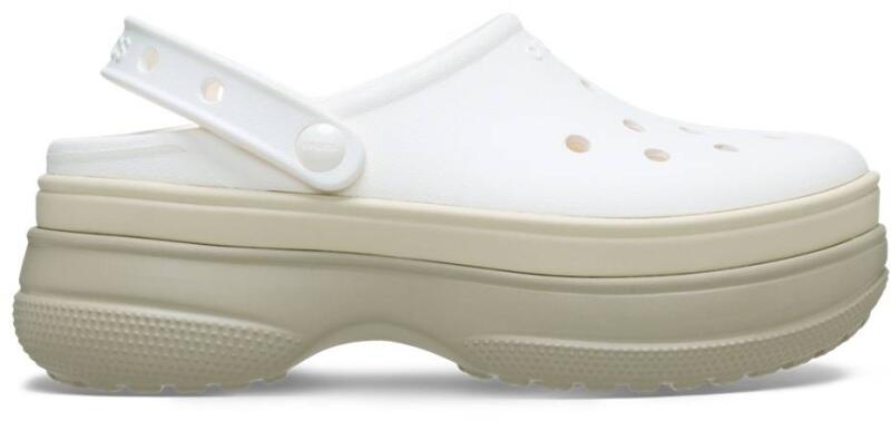 Crocs Stacked Clog női papucs A Stacked Clog a Crocs klasszikus formájának modernebb, emelt talpú változata. Ez a papucs extra magasságot ad anélkül, hogy elveszítené a jól ismert könnyűséget és kényelmet. A több rétegű, lépcsőzetes platform látványos, mégis könnyed megjelenést biztosít, amely feldob minden hétköznapi outfitet. A jól szellőző felsőrész és a Croslite talp kényelmes viseletet garantál. Ez a modell azoknak szól, akik nem csak kényelmes, hanem divatos lábbelit keresnek a mindennapokra.  Az ergonomikus talpágy és saroktámasz elvezeti a lépés során kialakult energiákat, csökkenti az ízületek terhelését. A papucs belső talpán körkörös irányban végigfutó masszírozó bütykök fokozzák a vérkeringést, harántemelő boltíve pedig egész napos kényelmet biztosít. Croslite alapanyag tulajdonságai: szabadalmaztatott technológia pehelykönnyű felveszi a láb alakját ellenáll a kellemetlen szagoknak, könnyen tisztítható