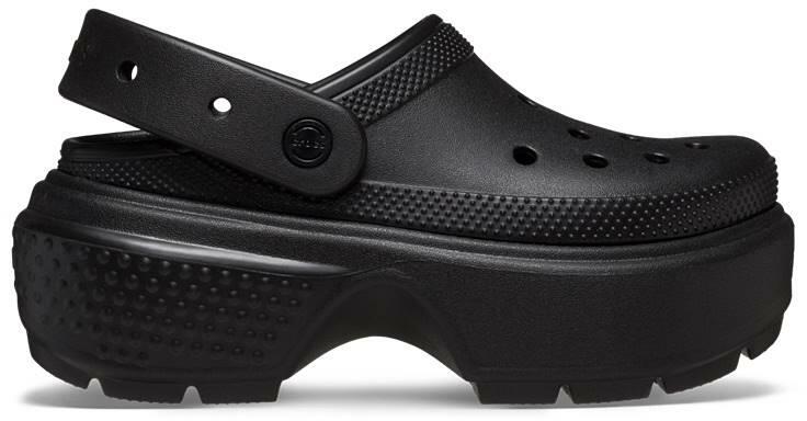 Crocs Stomp Clog platformos női papucs A Stomp kollekció stílusos, eltúlzott talpakkal rendelkezik, amelyek igazán vaskosak és merészek, miközben mégis könnyűnek érezheti a lábát. A drámai arányokkal, amelyek kiemelik a benne rejlő merészséget és a személyre szabhatóság minden báját, a Stomp kollekcióval a saját szemet gyönyörködtető ütemére lépegethet.  Extravagáns megjelenését tovább fokozzák a 6,9 cm magas platformos talpak és a Jibbitzekkel dszíthető légáteresztő lyukak. A rugalmas és habkönnyű Croslite anyaga pedig biztosítja a kényelmet. A Dual Crocs Comfort technológia a lábak védelmére, forgó sarokpántok a biztonságosabb illeszkedés érdekében.  Az ergonómikus talpágy és saroktámasz elnyeli a lépés során kialakult energiákat, a belsőtalp masszírozó bütykei pedig javítják a talp vérkeringését, csökkentik az izomfáradságot. Croslite alapanyag tulajdonságai: szabadalmaztatott technológia pehelykönnyű felveszi a láb alakját ellenáll a kellemetlen szagoknak, könnyen fertőtleníthető nem hagy anyagnyomot a padlón