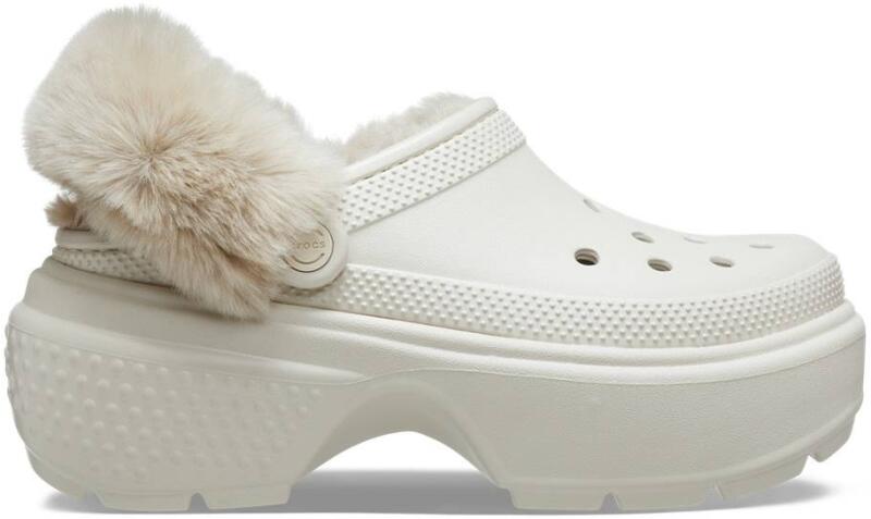Crocs Stomp Lined Clog platformos bélelt női papucs A Stomp kollekció stílusos, eltúlzott talpakkal rendelkezik, amelyek igazán vaskosak és merészek, miközben mégis könnyűnek érezheti a lábát. A Stomp Clog téli változata ez a platformos, belül teljesen bélelt papucs, melynek forgó sarokpántjai is a bundás anyaggal vannak felturbózva.  Extravagáns megjelenését tovább fokozzák a 5,6 cm magas platformos talpak és a Jibbitzekkel dszíthető légáteresztő lyukak. A rugalmas és habkönnyű Croslite anyaga pedig biztosítja a kényelmet. A Dual Crocs Comfort technológia a lábak védelmére, forgó sarokpántok a biztonságosabb illeszkedés érdekében.  Az ergonómikus talpágy és saroktámasz elnyeli a lépés során kialakult energiákat, a belsőtalp masszírozó bütykei pedig javítják a talp vérkeringését, csökkentik az izomfáradságot. Croslite alapanyag tulajdonságai: szabadalmaztatott technológia pehelykönnyű felveszi a láb alakját ellenáll a kellemetlen szagoknak, könnyen fertőtleníthető nem hagy anyagnyomot a padlón