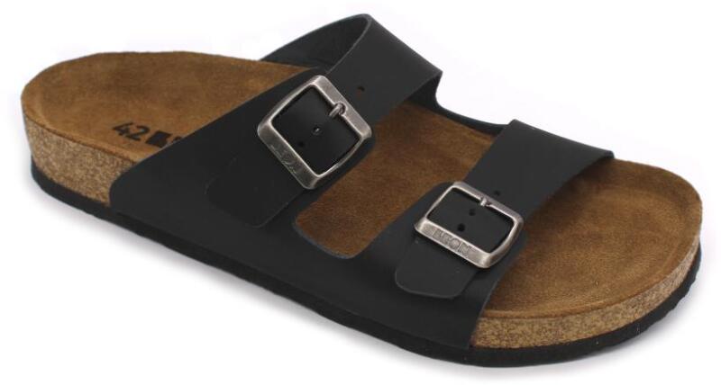 nöi nyitott, bör papucs. a felsörész, a csatoknak köszönhetöen, a lábhoz igazítható. a talp anatómiai kialakítású parafa, puha velúrbör talpbetéttel éshabszivacs alsó résszel. ajánlott minden napos otthoni vagy utcai használatra, könnyü nyári sétára ( több órás gyaloglás után sem fárad el a láb ).