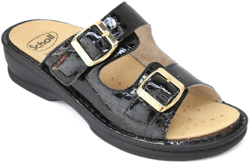 Scholl Mietta Buckle női bioprint csatos papucs fekete lakk F31399-1004 07326