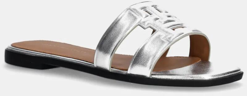 Tommy Hilfiger bőr papucs TH LOGO STRAP METALLIC MULE ezüst, női, FW0FW08676 - ezüst Női 38