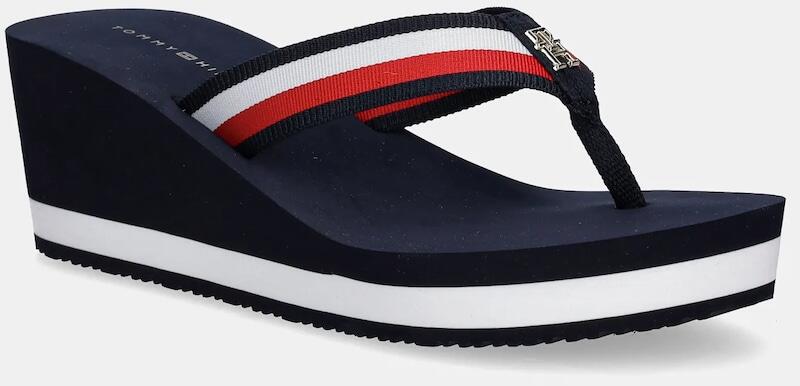 Tommy Hilfiger flip-flop TH CORPORATE WEDGE BEACH SANDAL sötétkék, női, éksarkú, FW0FW08520 - sötétkék Női 41